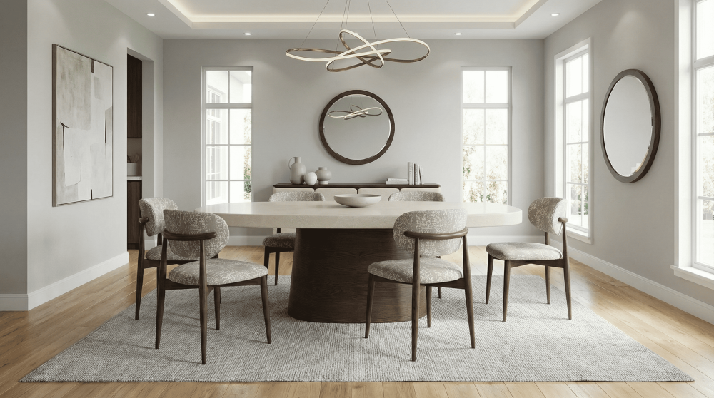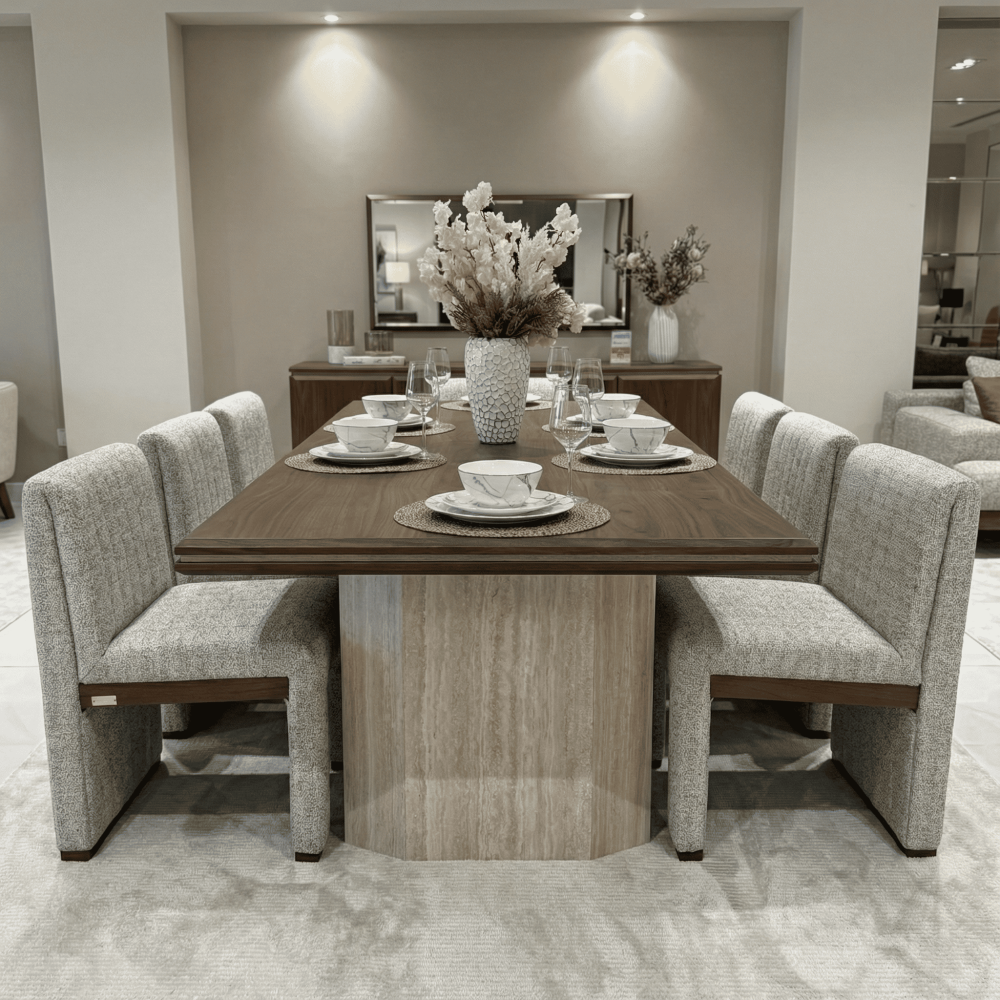 The compact and well-proportioned silhouette of both the seats and the small sofa, opens up to a new way of using the dining space.